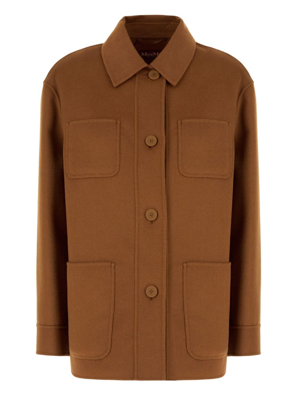 button-fastening patch-pocket jacket Highlights - Brown - Patch pockets - Button fastening - Polo collar - Long sleeves - Straight hem Imported Composition Wool 100% Washing instructions Read Manufacturer Guidelines