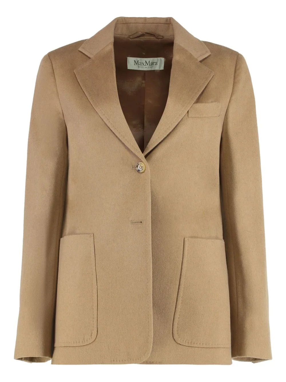 button single-breasted blazer Highlights - Camel - Lapel collar - Front button fastening - Front patch pockets - Buttoned cuffs Made in Italy Composition Outer: Camel Hair 100% Lining: Bio Acetate 65%, Polyester 35% Washing instructions Read Manufacturer Guidelines