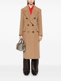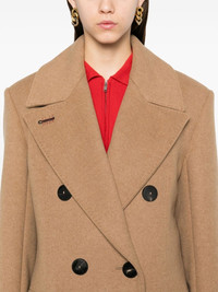 Certo coat Highlights - Camel brown - Cashmere blend - Felted finish - Double-breasted button fastening - Wide peak lapels - Embroidered logo to the lapel - Shoulder pads - Long sleeves - Faux buttoned cuffs - Dart detailing - Two side flap pockets - Central rear vent - Internal slip pocket - Full lining - Straight hem - Mid-calf length Made in Italy Composition Cashmere 53%, Camel Hair 45%, Wool 2% SIZE & FIT Model measurements Height 5 ft 10 in(1.78 m) Bust/Chest 33.85 in(86 cm) Hips 36.61 in(93 cm) Waist 26.77 in(68 cm) FittingInformation Designed for a slim fit that sits just away from the body offering a close yet comfortable fit The vented hem offers movement at the rear Made from a midweight non-stretch fabric