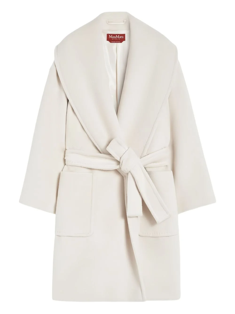 Cloruro belted coat Highlights - Off-white - Shawl collar - Belted waist - Patch pockets - Self-tie belt - Long sleeves Made in Italy Composition Outer: Alpaca 77%, Virgin Wool 23% Lining: Viscose 100% Washing instructions Read Manufacturer Guidelines