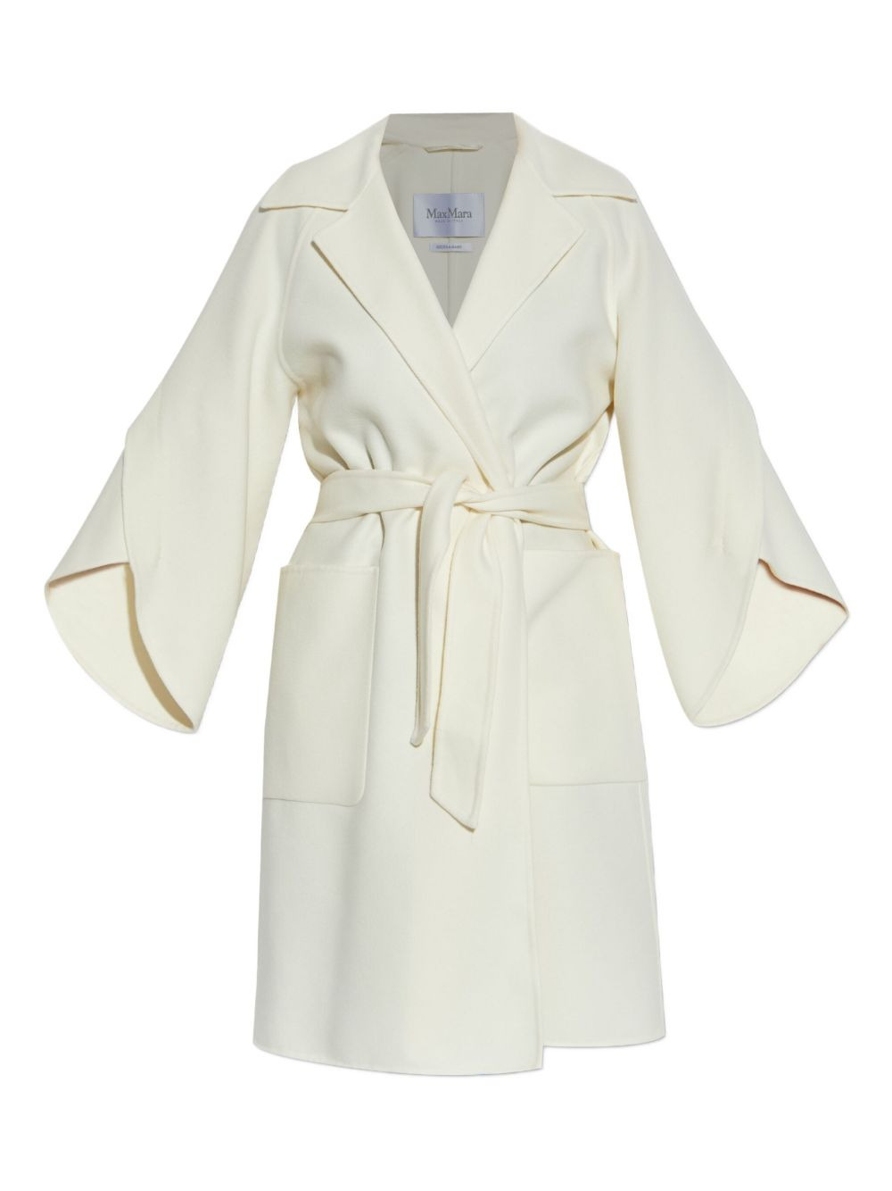 Cosetta belted coat Highlights - White - Wide notch lapels - Self-tie belt - Side patch pockets - Flared sleeves Made in Italy Composition Virgin Wool 90%, Cashmere 10% Washing instructions Read Manufacturer Guidelines