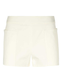 cotton shorts Highlights - Off-white - Two side pockets - Concealed zip fastening - Flat front - Straight hem Made in Italy Composition Cotton 93%, Elastane 7% SIZE & FIT FittingInformation Designed for a slim fit that sits just away from the body offering a close yet comfortable fit Made from a midweight stretch fabric, this piece offers elasticity and flexibility when worn