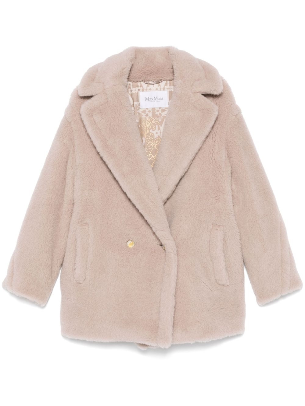 Teddy Cuba coat Highlights - Light beige - Double-breasted button fastening - Two side welt pockets - Notched lapels - Long sleeves Made in Italy Composition Outer: Alpaca 62%, Virgin Wool 26%, Silk 12% Lining: Silk 100% SIZE & FIT Model measurements Height 5 ft 11 in(1.8 m) Bust/Chest 32.67 in(83 cm) Hips 36.22 in(92 cm) Waist 24.4 in(62 cm) FittingInformation Designed to be unstructured, offering a loose fit throughout Made from a midweight non-stretch fabric