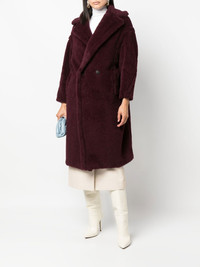 Tedgirl double-breasted alpaca-wool coat Max Mara epitomises a cosy aesthetic in this double-breasted coat through the soft alpaca-wool blend construction and swathing oversized silhouette. Highlights - Dark purple - Alpaca wool-blend - Wide notch lapels - Double-breasted button fastening - Two front welt pockets - Long sleeves Made in Italy Composition Outer: Alpaca Wool 62%, Virgin Wool 26%, Silk 12% Lining: Viscose 100% SIZE & FIT Model measurements Height 5 ft 11 in(1.8 m) Bust/Chest 33.07 in(84 cm) Hips 37.4 in(95 cm) Waist 25.19 in(64 cm) FittingInformation This piece fits true to size. We recommend you get your regular size Cut for a loose fit Made with a mid-weight non-stretch fabric Washing instructions Dry Clean Only
