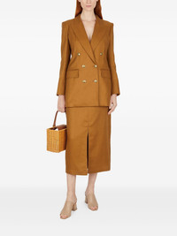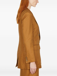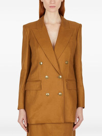 double-breasted blazer Highlights - Brown - Double-breasted fastening - Padded shoulders - Flap pockets - Long sleeves Imported Composition Linen/Flax 100% Washing instructions Read Manufacturer Guidelines