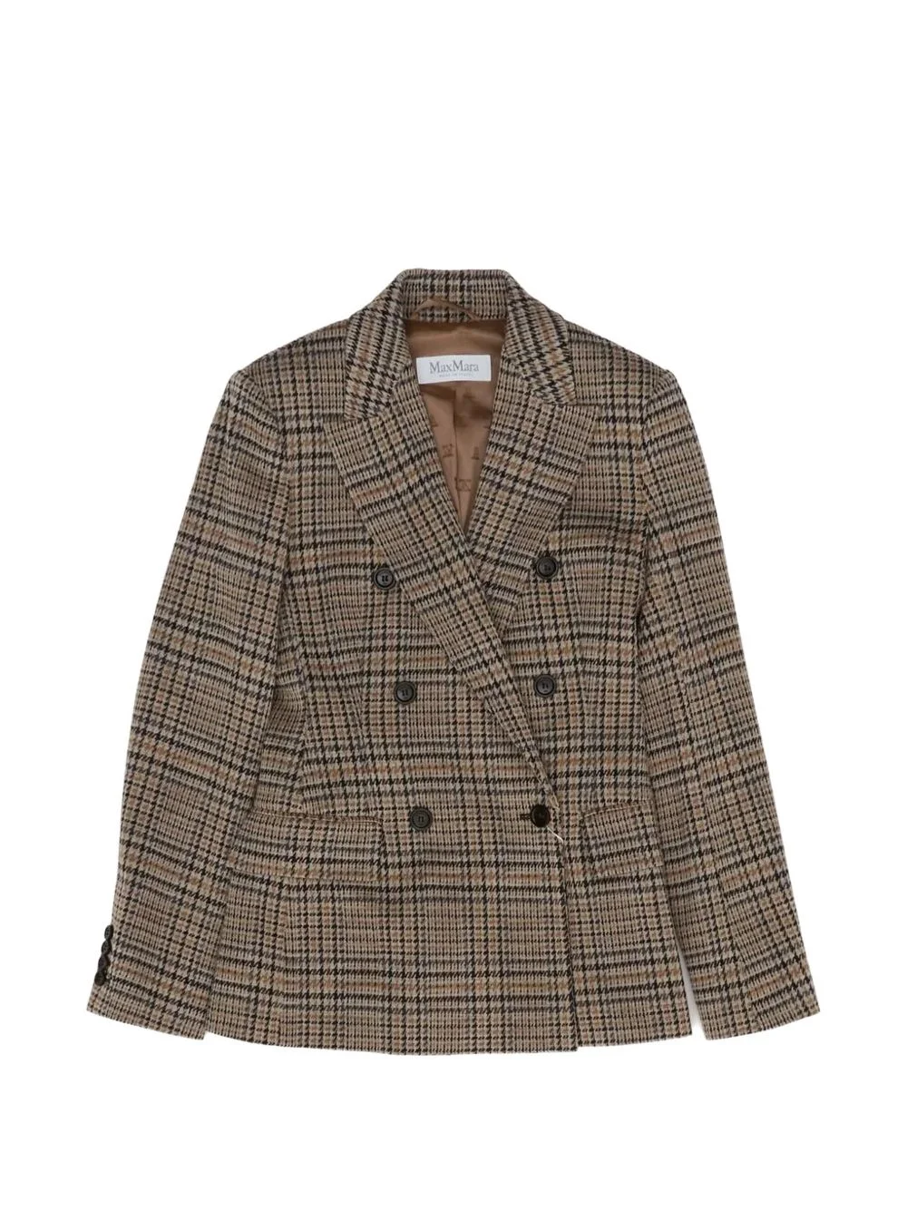 double-breasted check blazer Highlights - Brown - Check pattern - Double-breasted - Peaked lapels - Flap pockets - Button fastening Made in Italy Composition Virgin Wool 70%, Cotton 30% Washing instructions Read Manufacturer Guidelines