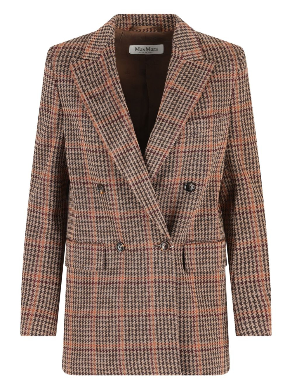 double-breasted check blazer Highlights - Brown - Check pattern - Double-breasted - Button fastening - Notched lapels - Front flap pockets Made in Italy Composition Outer: Washing instructions Read Manufacturer Guidelines