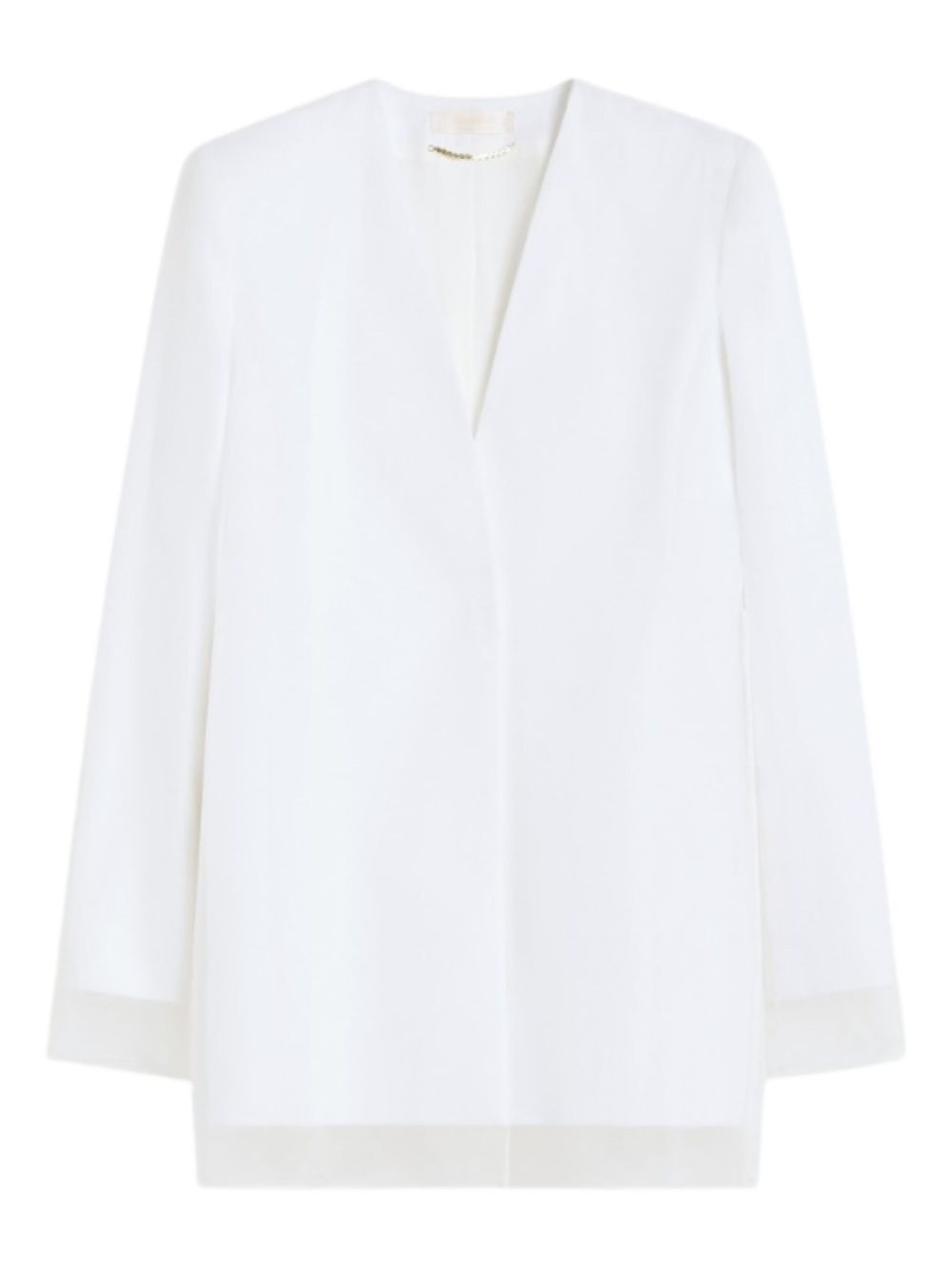 double-layered organza jacket Highlights - White - Double layer - V-neck - Long sleeves - Sheer organza cuffs Imported Composition Silk Organza 100% Washing instructions Read Manufacturer Guidelines