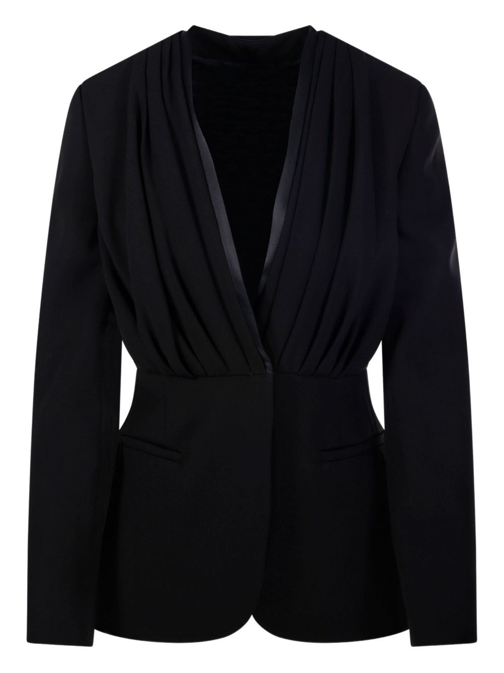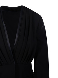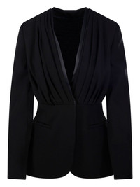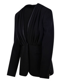 draped blazer Highlights - Black - Deep v-neck - Front draping - Long sleeves - Side pockets - Satin finish detailing Made in Italy Composition Triacetate 64%, Polyester 36% Washing instructions Read Manufacturer Guidelines