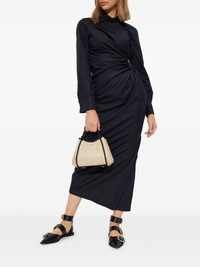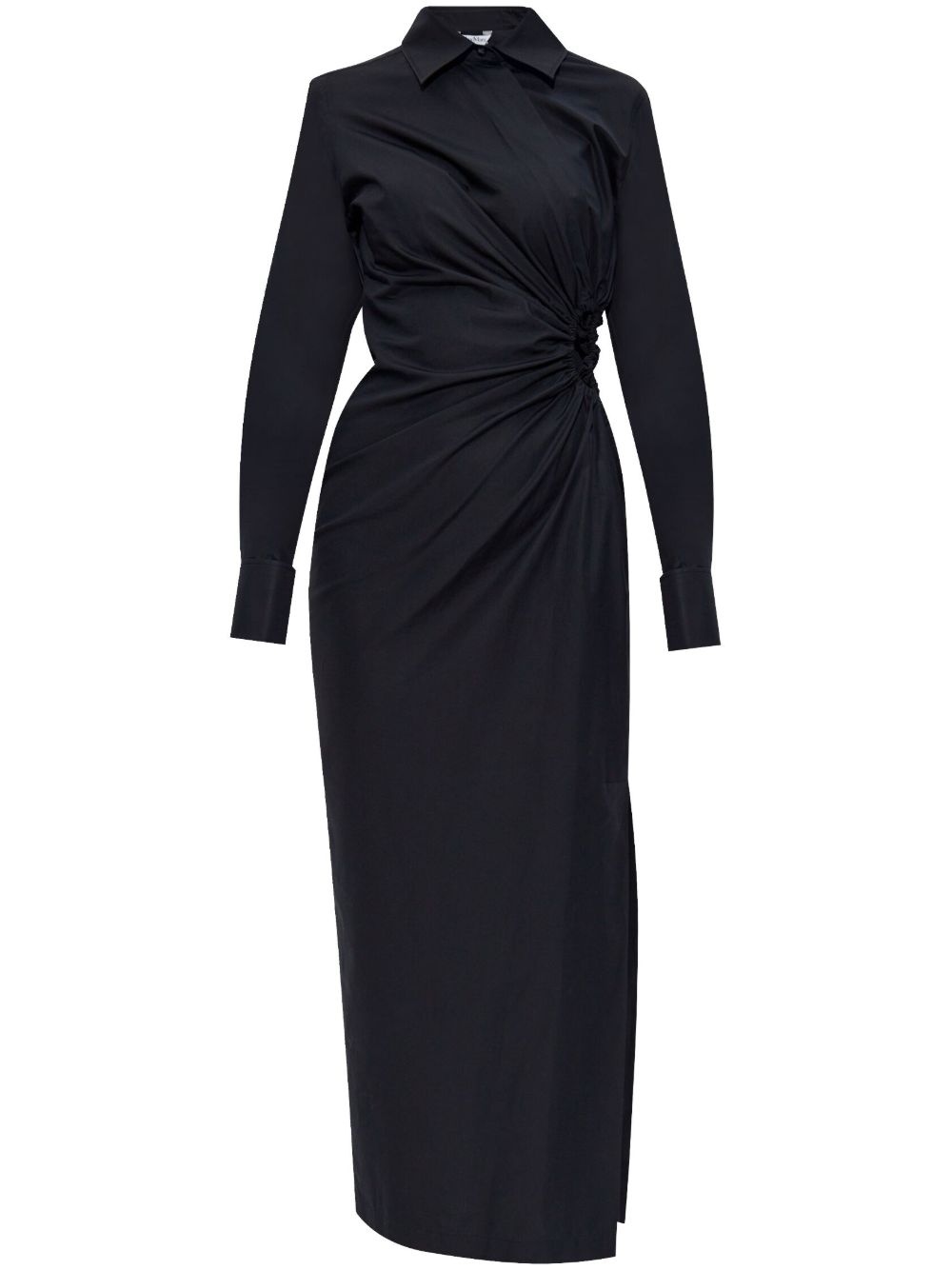 draped-detailing midi dress Highlights - Black - Concealed front fastening - Cut-out detailing - Classic collar - Long sleeves Made in Italy Composition Cotton 100% SIZE & FIT FittingInformation Designed for a slim fit that sits just away from the body offering a close yet comfortable fit Made from a midweight non-stretch fabric, this piece offers minimal elasticity when worn