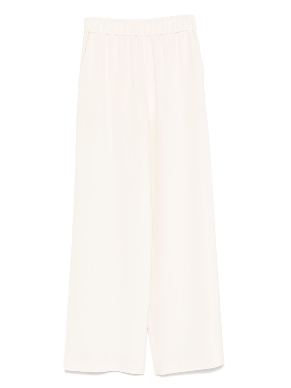 elasticated-waist trousers Highlights - White - Pull-on style - Two side slash pockets - High-waisted - Straight hem Made in Italy Composition Silk 91%, Elastane 9% SIZE & FIT Model measurements Height 5 ft 10 in(1.78 m) Bust/Chest 31.49 in(80 cm) Hips 37 in(94 cm) Waist 23.62 in(60 cm) FittingInformation Designed with a wide-leg cut, these trousers allow for a close fit at the waist and offer a loose and roomy fit over the leg The elasticated waist allows for a comfortable fit Made from a midweight non-stretch fabric, this piece offers minimal elasticity when worn Washing instructions Dry Clean Only