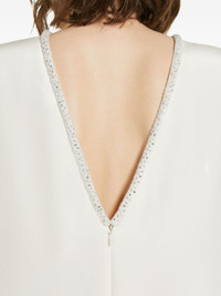 embellished-neckline maxi bridal dress Highlights - White - Silk - Wide three-quarter sleeves - Embellished neck - Back concealed-zip fastening - V-shaped back Imported Composition Lining: Acetate 85%, Silk 10%, Polyamide 5% Outer: Silk 100% Washing instructions Read Manufacturer Guidelines