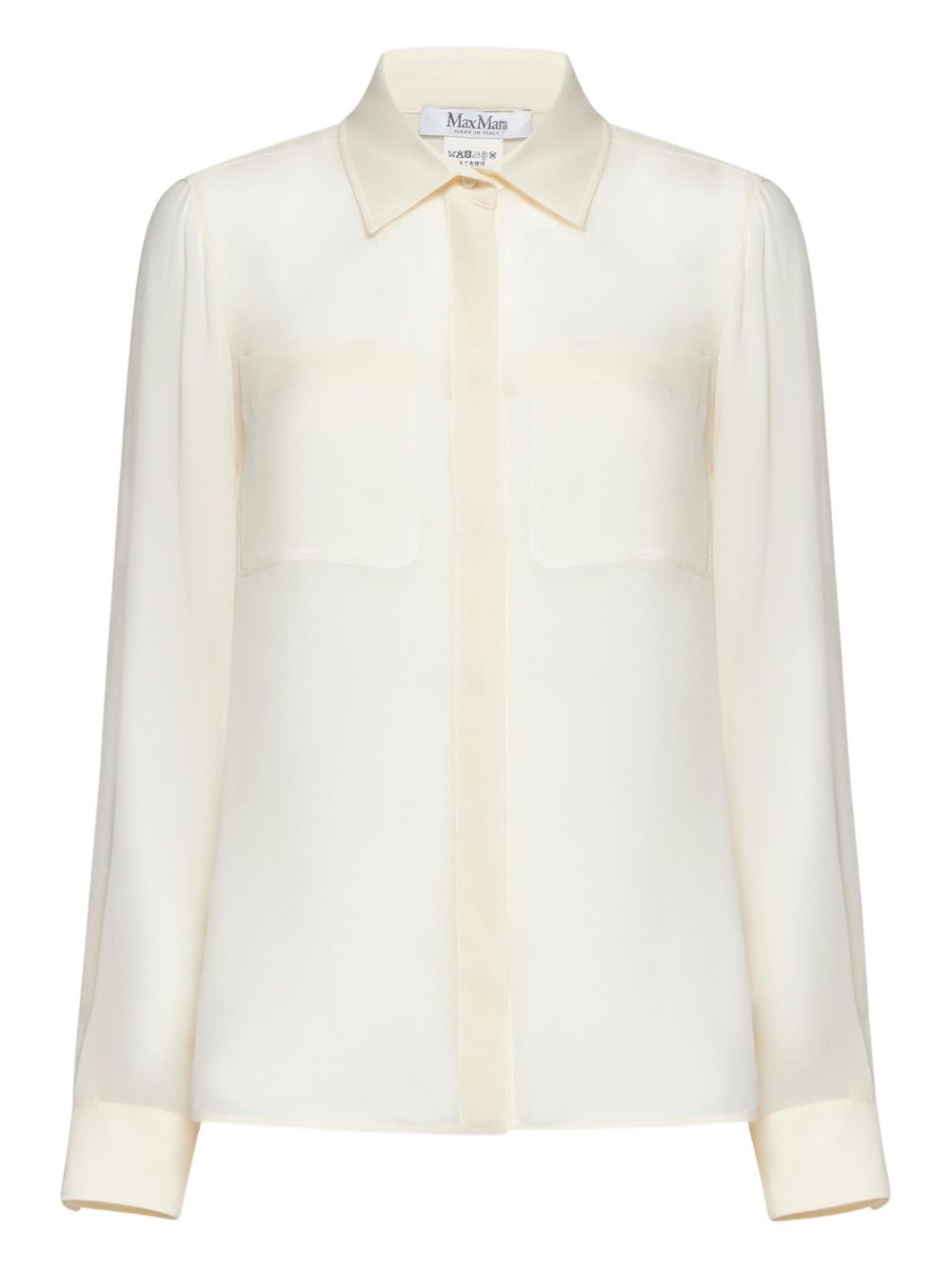 embroidered-pocket silk shirt Highlights - Off-white - Pointed collar - Concealed buttoning - Chest pockets - Embroidered logo - Buttoned cuffs Made in Italy Composition Silk 100% Washing instructions Dry Clean Only