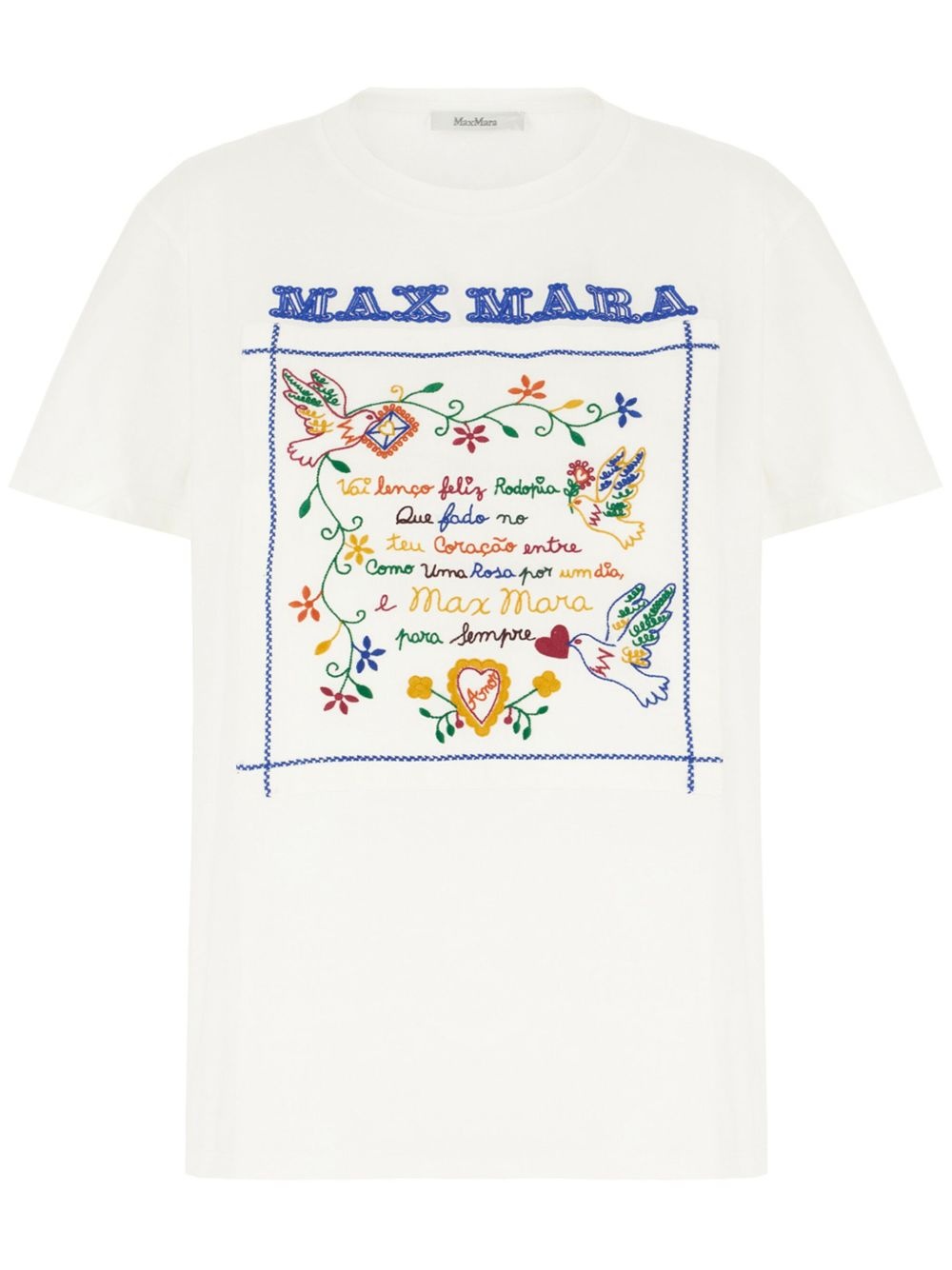 embroidered T-shirt Highlights - White - Crew neck - Short sleeves - Straight hem Made in Italy Composition Cotton 100% Washing instructions Read Manufacturer Guidelines