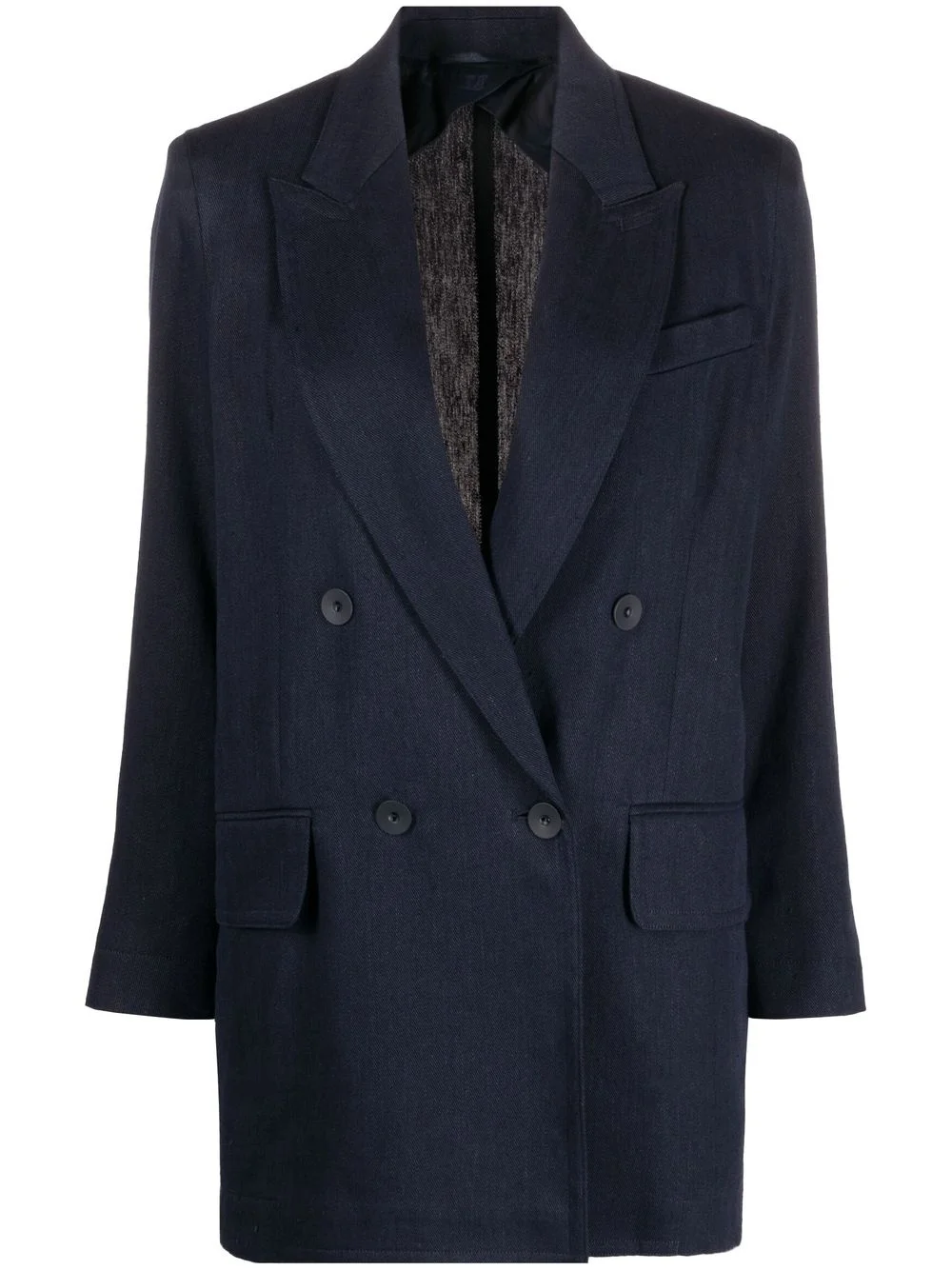 faux double-breasted blazer Highlights - Midnight blue - Linen/flax blend - Peak lapels - Faux double-breasted front - Long sleeves - Buttoned-cuff sleeves - Two front flap pockets - Straight hem Made in Italy Composition Outer: Linen/Flax 67%, Cotton 33% Lining: Cotton 53%, Cupro 47% SIZE & FIT Model measurements Height 5 ft 10 in(1.77 m) Bust/Chest 32.28 in(82 cm) Hips 34.64 in(88 cm) Waist 24.4 in(62 cm) FittingInformation This piece fits true to size. We recommend you get your regular size Cut for a loose fit Made with a mid-weight non-stretch fabric