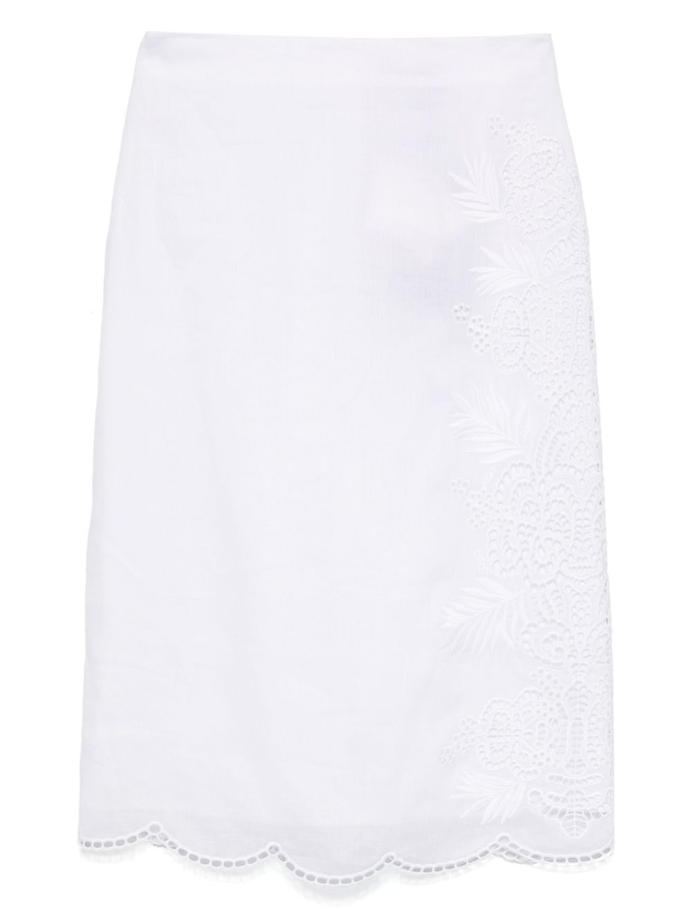 Fify midi skirt Highlights - White - Rear zip fastening - Broderie anglaise - Scallop hem Imported Composition Outer: Ramie 100%, Polyester 100% Lining: Cotton 100% SIZE & FIT Model measurements Height 5 ft 10 in(1.78 m) Bust/Chest 31.49 in(80 cm) Hips 37 in(94 cm) Waist 23.62 in(60 cm) FittingInformation This midi-length skirt is intended to be worn just below the waist Made from a midweight non-stretch fabric