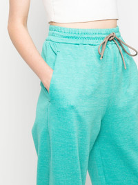 flared drawstring-waist trousers Highlights - Turquoise green - Cotton-linen blend - Fleece texture - Elasticated drawstring waistband - Two side inset pockets Made in Italy Composition Cotton 60%, Linen/Flax 40% Washing instructions Dry Clean Only