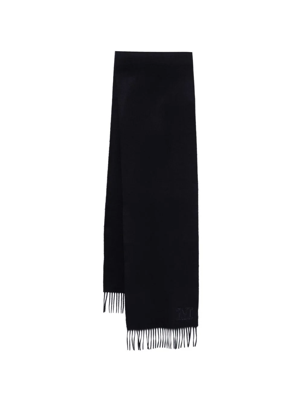 fringed-hem logo-embroidered scarf Highlights - Navy blue - Cashmere - Fringed edge - Embroidered logo Made in Italy Composition Cashmere 100% SIZE & FIT Measurement LENGTH 82.67 in(210 cm) WIDTH 11.41 in(29 cm) Washing instructions Dry Clean Only