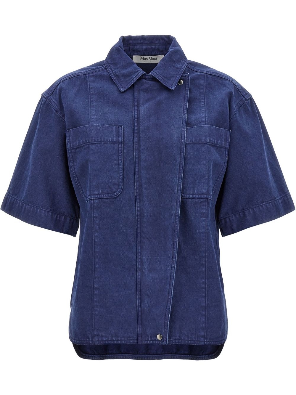 Gabriel shirt Highlights - Indigo blue - Concealed front fastening - Two chest patch pockets - Classic collar - Short sleeves Made in Italy Composition Cotton 100%