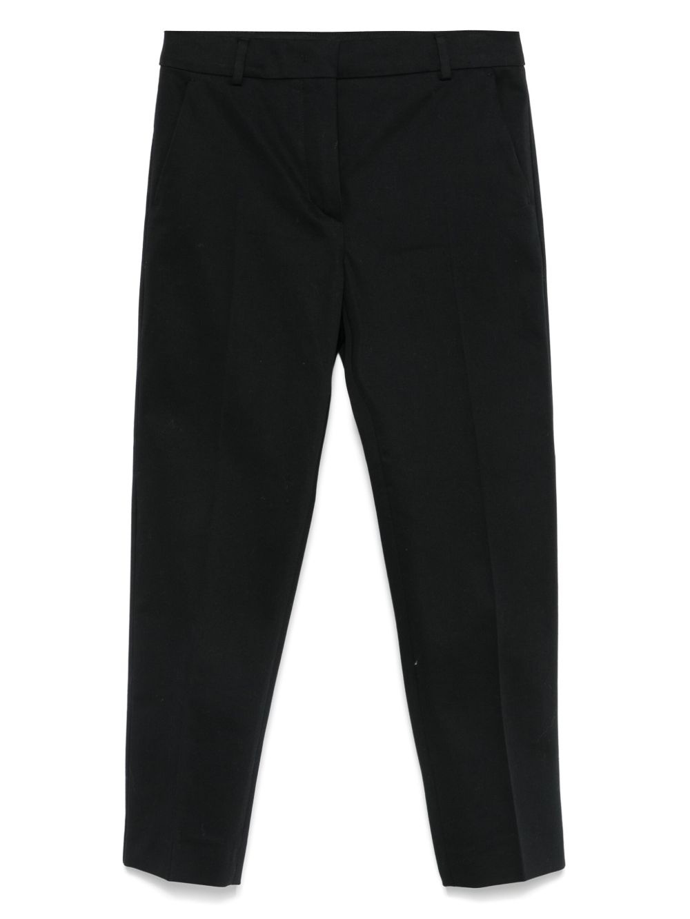 high-waisted trousers Highlights - Black - Hook and zip fly fastening - Belt loops - Slip pockets to the sides - Two rear flap pockets Made in Italy Composition Cotton 98%, Spandex/Elastane 2% SIZE & FIT Model measurements Height 5 ft 11 in(1.8 m) Bust/Chest 31.49 in(80 cm) Hips 36.61 in(93 cm) Waist 24.4 in(62 cm) FittingInformation Designed for skinny fit cut offering a close fit and minimal movement Cropped in length Made from a midweight stretch fabric, this piece offers elasticity and flexibility when worn Washing instructions Machine Wash