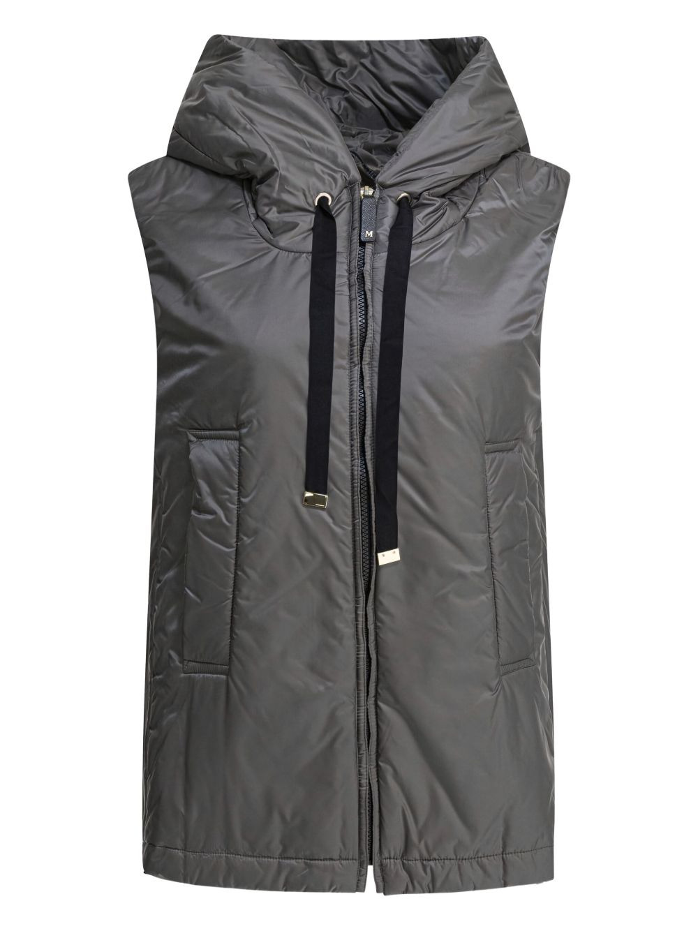 hooded padded vest Highlights - Black - Padded design - Zip fastening - Drawstring hood - Welt pockets Made in Italy Composition Polyester 100% Washing instructions Read Manufacturer Guidelines