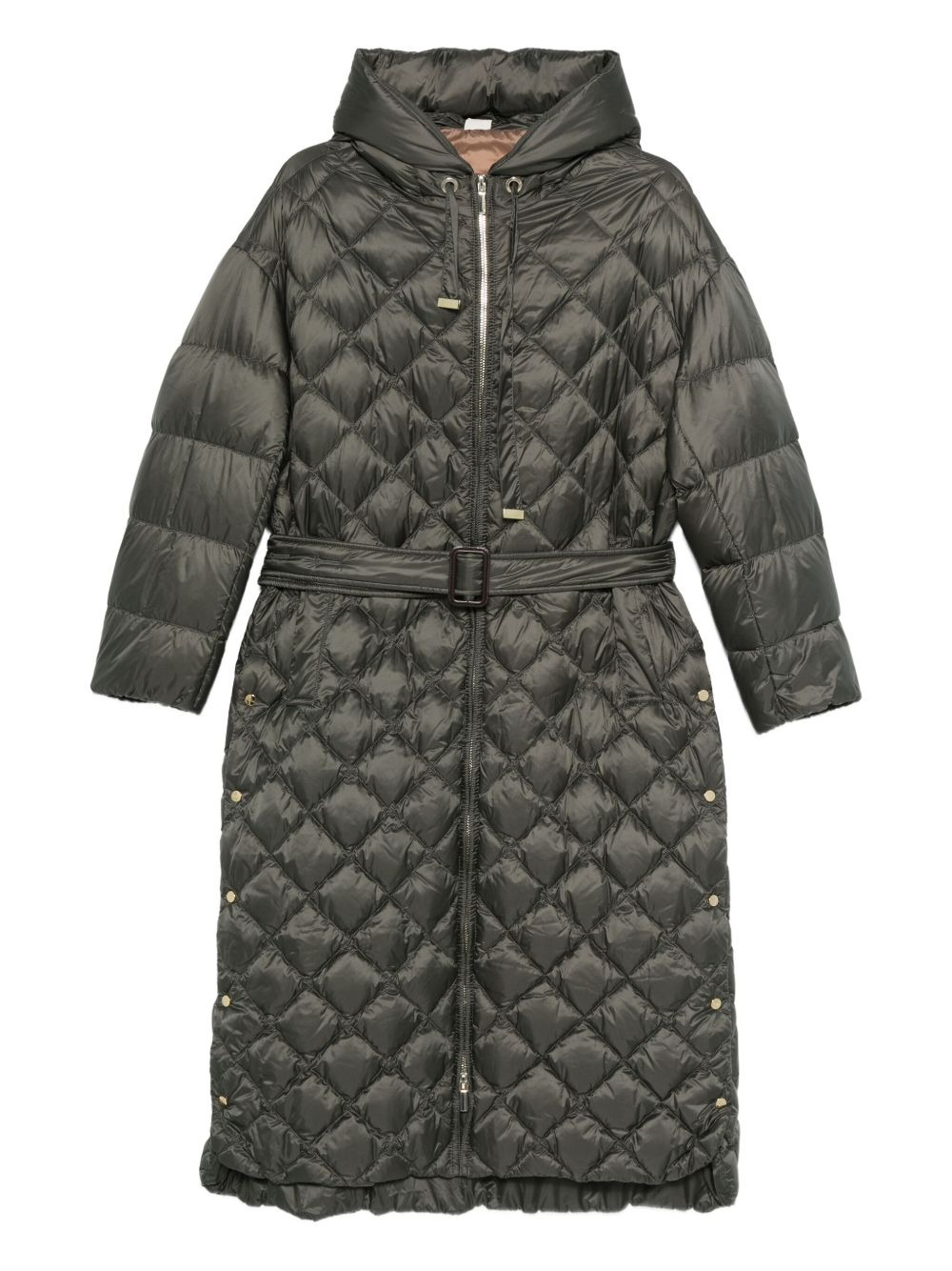 hooded quilted belted jacket Highlights - Green - Diamond quilting - Hooded neckline - Zip fastening - Belted waist - Press studs Imported Composition Lining: Goose Down 100%, Polyamide 100% Outer: Polyamide 100% SIZE & FIT Model measurements Height 5 ft 9 in(1.75 m) Bust/Chest 34.64 in(88 cm) Hips 36.61 in(93 cm) Waist 26.37 in(67 cm) Washing instructions Read Manufacturer Guidelines