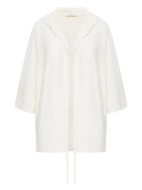 hooded wool cardigan Highlights - White - Wool - Hooded neckline - Three-quarter length sleeves - Drawstring hem Made in Italy Composition Virgin Wool 100% Washing instructions Read Manufacturer Guidelines