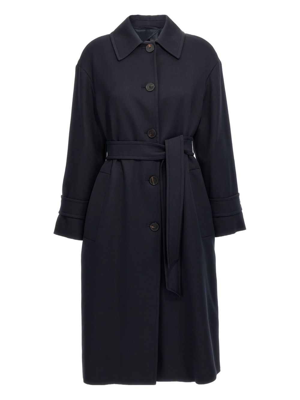 Ilde belted single-breasted coat Highlights - Blue - Single-breasted closure - Button fastening - Pockets - Long sleeves - Back vent - Removable belt Imported Composition Cotton 53%, Viscose 47% Washing instructions Read Manufacturer Guidelines