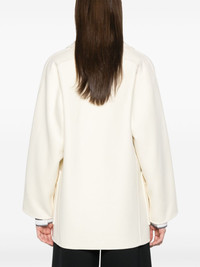 Jacke jacket Highlights - Light beige - Double-breasted button fastening - Two side patch pockets - Notched lapels - Long raglan sleeves Made in Italy Composition Virgin Wool 70%, Cashmere 30% SIZE & FIT Model measurements Height 5 ft 10 in(1.78 m) Bust/Chest 33.85 in(86 cm) Hips 36.61 in(93 cm) Waist 26.77 in(68 cm) Measurement SLEEVE LENGTH 27.55 in(70 cm) LENGTH 31.1 in(79 cm) WAIST 42.51 in(108 cm) FittingInformation Designed to be unstructured, offering a loose fit throughout Made from a midweight non-stretch fabric