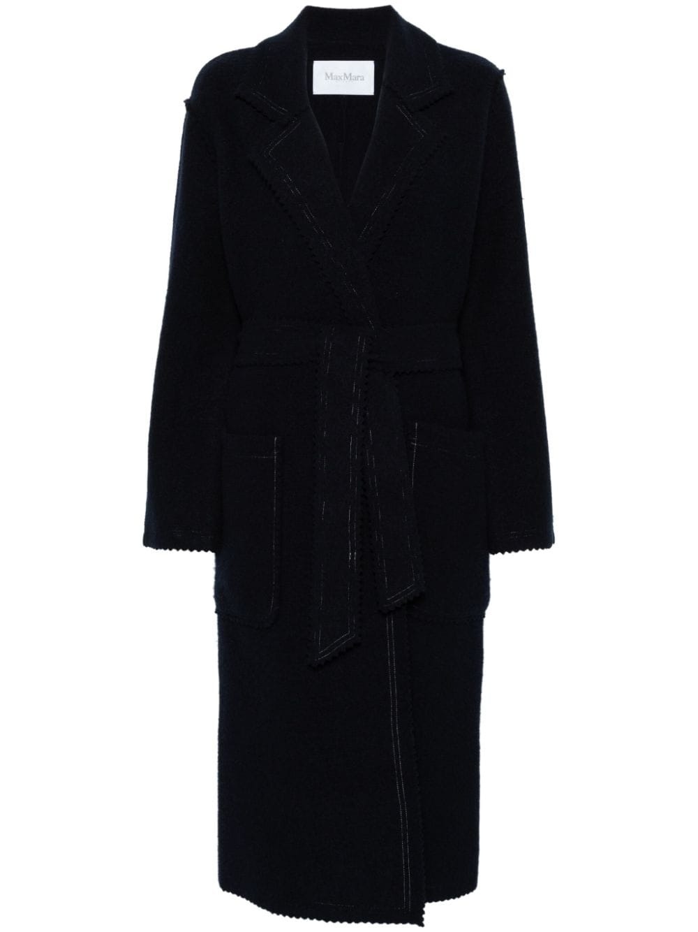 Jene coat Highlights - Midnight blue - Wool-cashmere blend - Brushed effect - Scallop edge - Detachable waist belt - Notched lapels - Long sleeves - Two front patch pockets - Central rear vent - Straight hem Made in Italy Composition Wool 70%, Cashmere 30% SIZE & FIT Model measurements Height 5 ft 10 in(1.78 m) Bust/Chest 31.49 in(80 cm) Hips 37 in(94 cm) Waist 23.62 in(60 cm) FittingInformation Designed to be unstructured, offering a loose fit throughout The tie fastening gives an adaptable and personalised fit Made from a midweight fabric