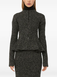 Kim ribbed-knit peplum cardigan Highlights - White - Ribbed knit - Peplum hem - Zip front - Long sleeves - Wool cashmere blend Made in Italy Composition Wool 68%, Cashmere 29%, Polyamide 2%, Spandex/Elastane 1% Washing instructions Read Manufacturer Guidelines
