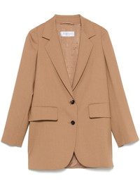 Kitten blazer Highlights - Camel brown - Front button fastening - Shoulder pads - Split cuffs - Two front flap pockets Made in Italy Composition Outer: Virgin Wool 71%, Mohair 18%, Silk 11% Lining: Acetate 65%, Polyester 35% SIZE & FIT Model measurements Height 5 ft 11 in(1.8 m) Bust/Chest 31.49 in(80 cm) Hips 36.61 in(93 cm) Waist 24.4 in(62 cm) FittingInformation Designed for a slim fit that sits just away from the body offering a close yet comfortable fit The internal shoulder pads offer a structured shape Made from a midweight non-stretch fabric