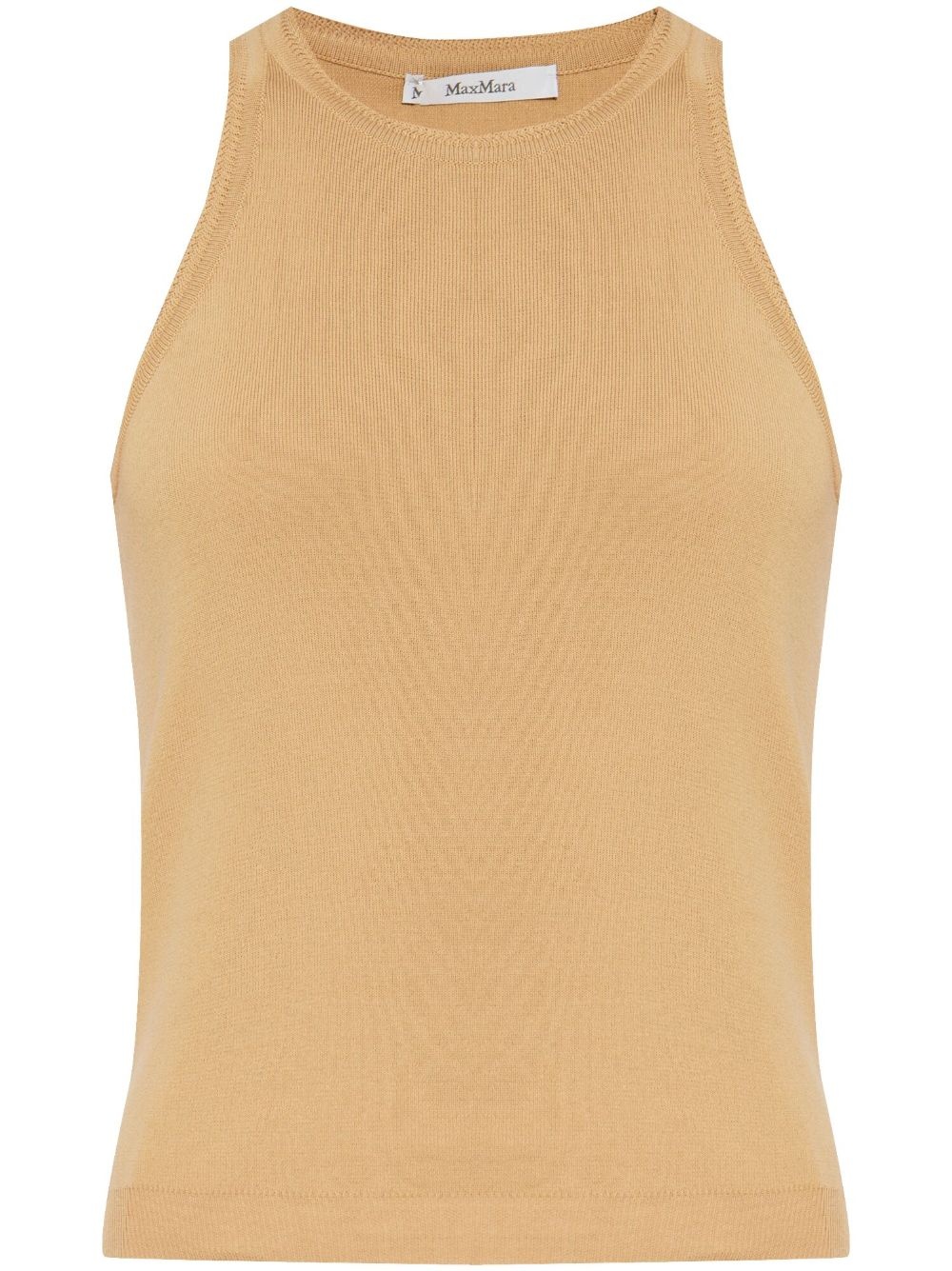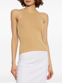 knitted tank top Highlights - Sand beige - Rounded collar - Fine knit - Ribbed detailing - Sleeveless Made in Italy Composition Cotton 100% SIZE & FIT FittingInformation Designed for a slim fit that sits just away from the body offering a close yet comfortable fit Made with a midweight knit, this piece offers some stretch