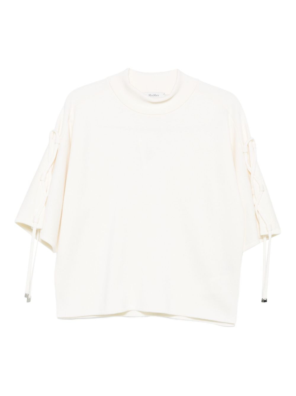 lace-up drop-shoulder top Highlights - White - Lace-up detail at the sleeves - Mock neck - Short sleeves - Drop shoulder - Straight hem Made in Italy Composition Virgin Wool 100% SIZE & FIT Model measurements Height 5 ft 11 in(1.8 m) Bust/Chest 31.49 in(80 cm) Hips 36.61 in(93 cm) Waist 24.4 in(62 cm) Washing instructions Read Manufacturer Guidelines