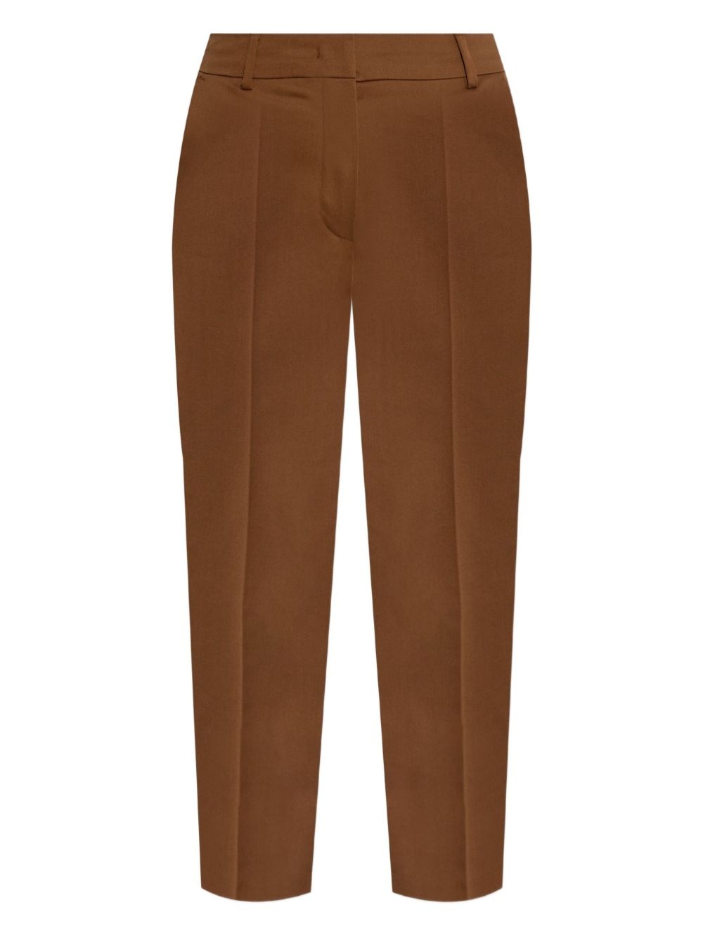 Lince tailored high-waist trousers Highlights - Brown - Pleated front - Belt loops - Side pockets - Cropped hem - Pressed creases Made in Italy Composition Cotton 98%, Elastane 2% SIZE & FIT FittingInformation Designed for skinny fit cut offering a close fit and minimal movement Cropped in length Made from a midweight stretch fabric, this piece offers elasticity and flexibility when worn