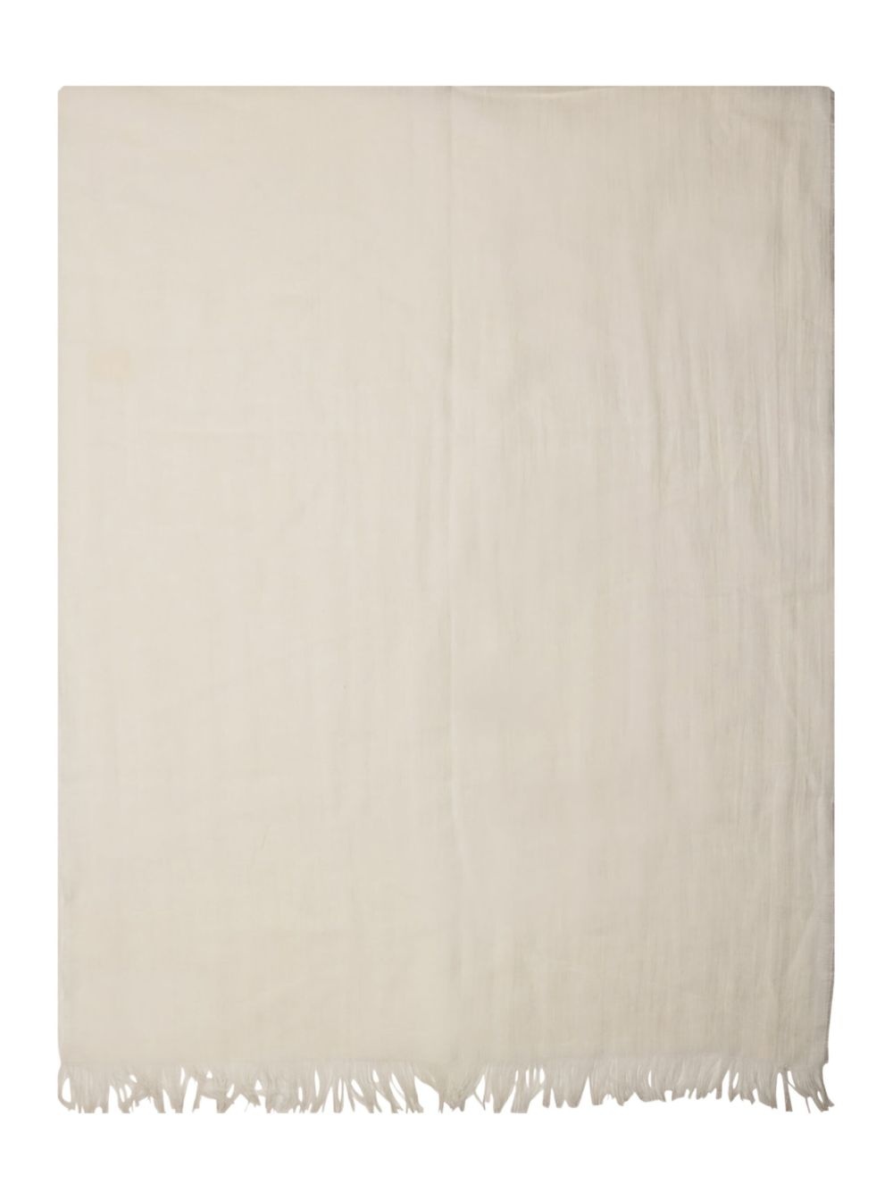 linen scarf Highlights - White - Wraparound style - Rectangle shape - Fringed edge Made in Italy Composition Linen/Flax 100% SIZE & FIT Measurement LENGTH 28.74 in(73 cm) WIDTH 11.41 in(29 cm)