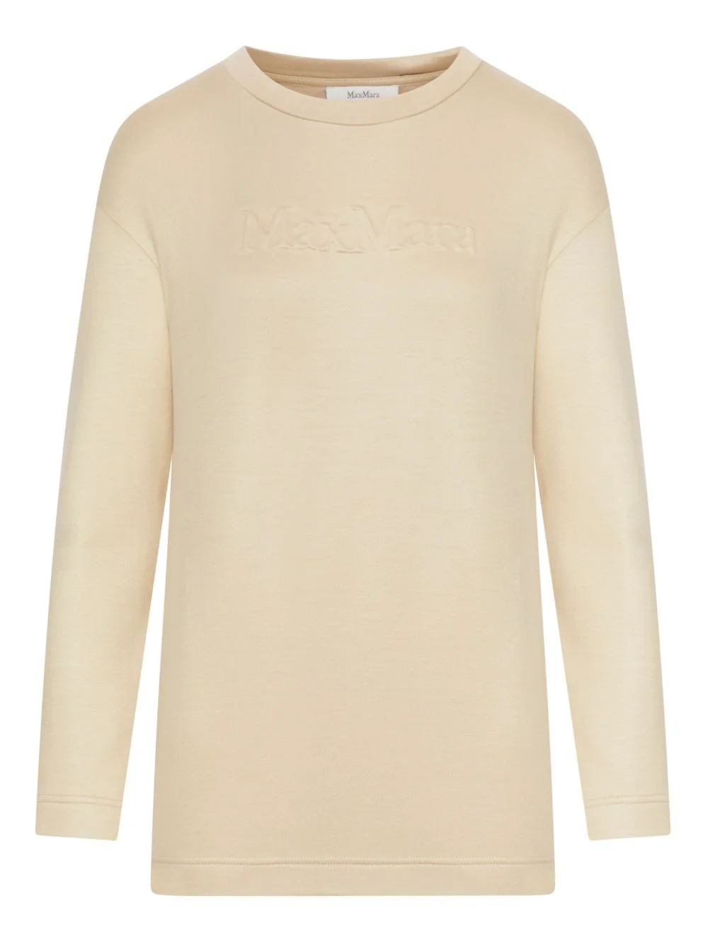 logo-embossed sweatshirt Highlights - Beige - Long sleeves - Round neck - Embossed logo - Silk blend Made in Italy Composition Silk 55%, Cotton 43%, Elastane 2% Washing instructions Read Manufacturer Guidelines