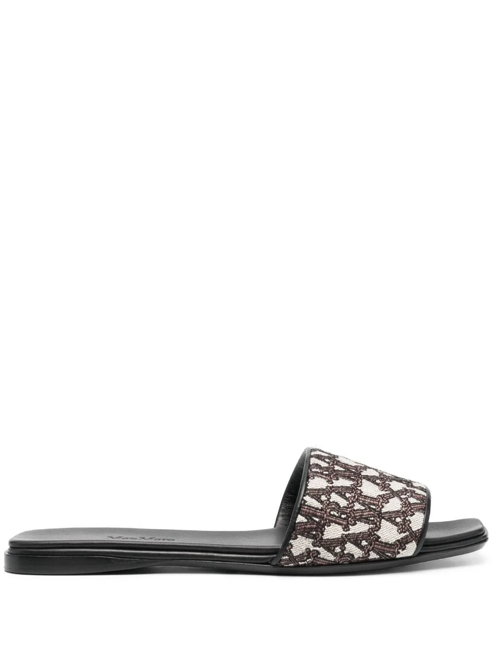 logo-jacquard leather slides Crafted from smooth leather in Italy, these Max Mara slides are elevated with a canvas strap woven with the house's subtle MaxMaraGram jacquard pattern. Highlights - Black - Jacquard logo motif - Single toe strap - Open toe - Square toe - Branded leather insole - Flat leather sole Made in Italy Composition Outer: Calf Leather 100%, Fabric 100% Lining: Calf Leather 100% Sole: Calf Leather 100% SIZE & FIT Measurement HEEL 0.59 in(1.5 cm) Sole height 0.39 in(1 cm)