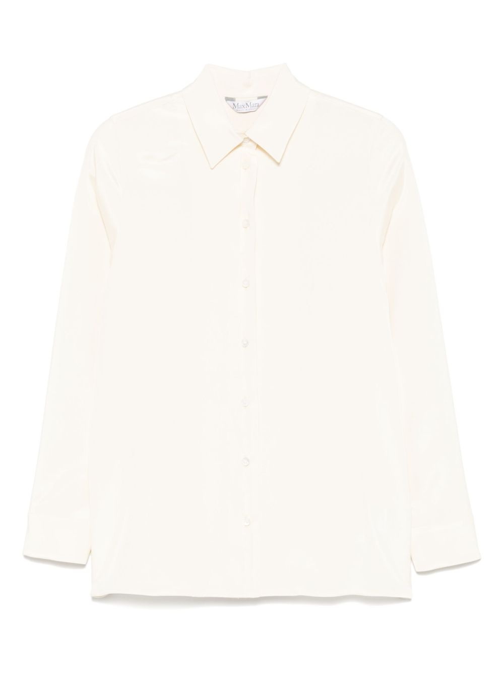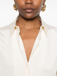 long-sleeve shirt Highlights - Ecru - Front button fastening - Classic collar - Buttoned-cuff sleeves - Straight hem Made in Italy Composition Silk 93%, Elastane 7% SIZE & FIT Model measurements Height 5 ft 11 in(1.8 m) Bust/Chest 31.49 in(80 cm) Hips 36.61 in(93 cm) Waist 24.4 in(62 cm) FittingInformation Designed for a relaxed fit, this piece allows for comfort and movement when worn Made from a midweight stretch fabric, this piece offers elasticity and flexibility when worn Washing instructions Dry Clean Only