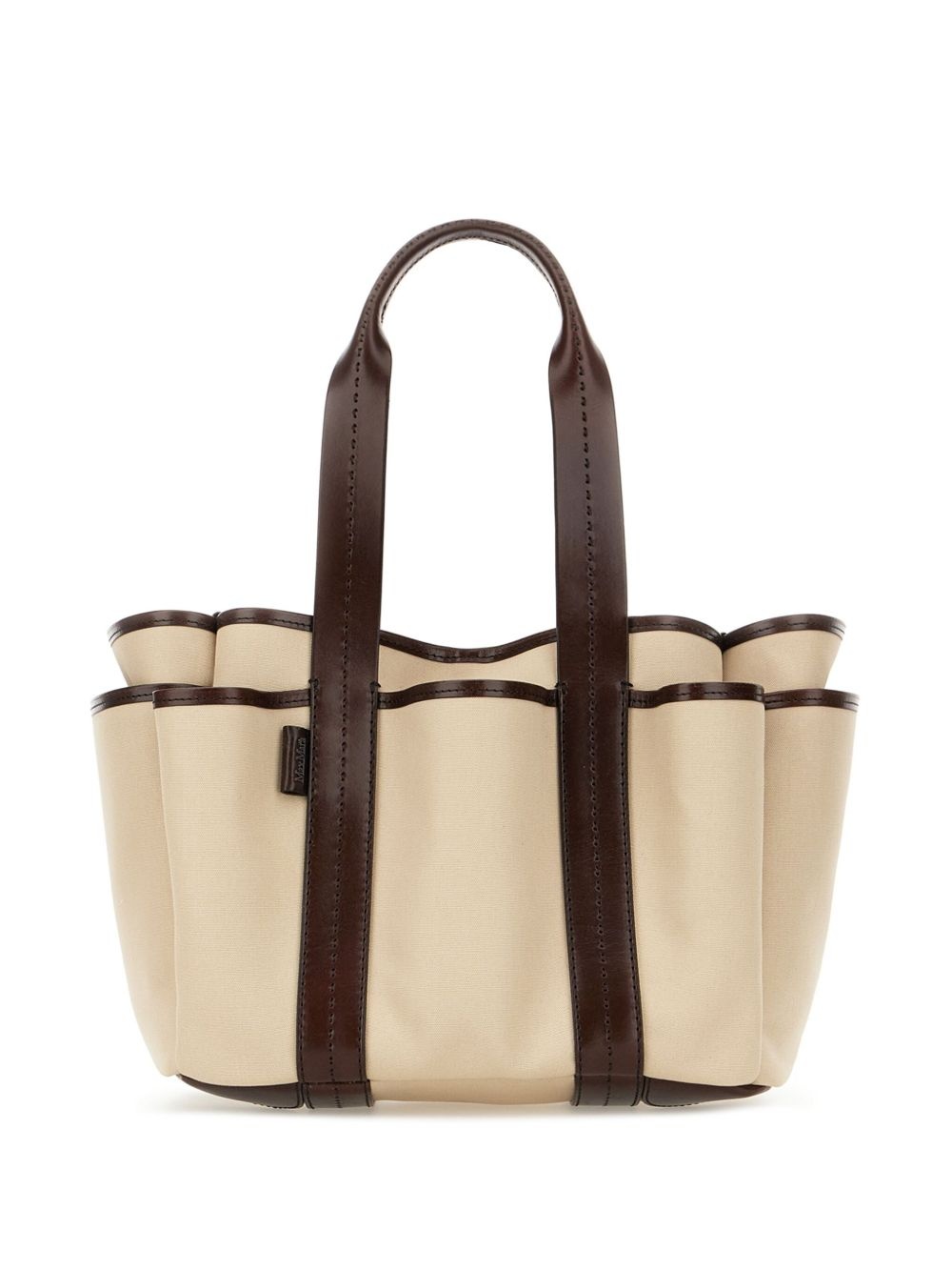 medium Garden Cabas tote bag Highlights - Ecru - Hook fastening - Two top handles - Multiple patch pockets - Main compartment Imported Composition Lining: Nylon 100% Outer: Leather 100%, Cotton 100% SIZE & FIT Measurement DEPTH 8.66 in(22 cm) HANDLE 8.66 in(22 cm) HEIGHT 9.84 in(25 cm) WIDTH 16.92 in(43 cm)