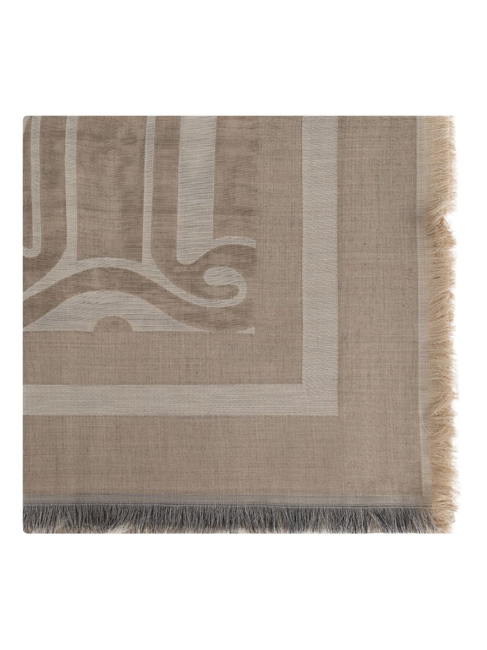 Mia scarf Highlights - Beige - Square shape - Fringed edge - Geometric-pattern print - Wraparound style Made in Italy Composition Linen/Flax 80%, Modal 20% SIZE & FIT Measurement LENGTH 54.33 in(138 cm) WIDTH 54.33 in(138 cm)