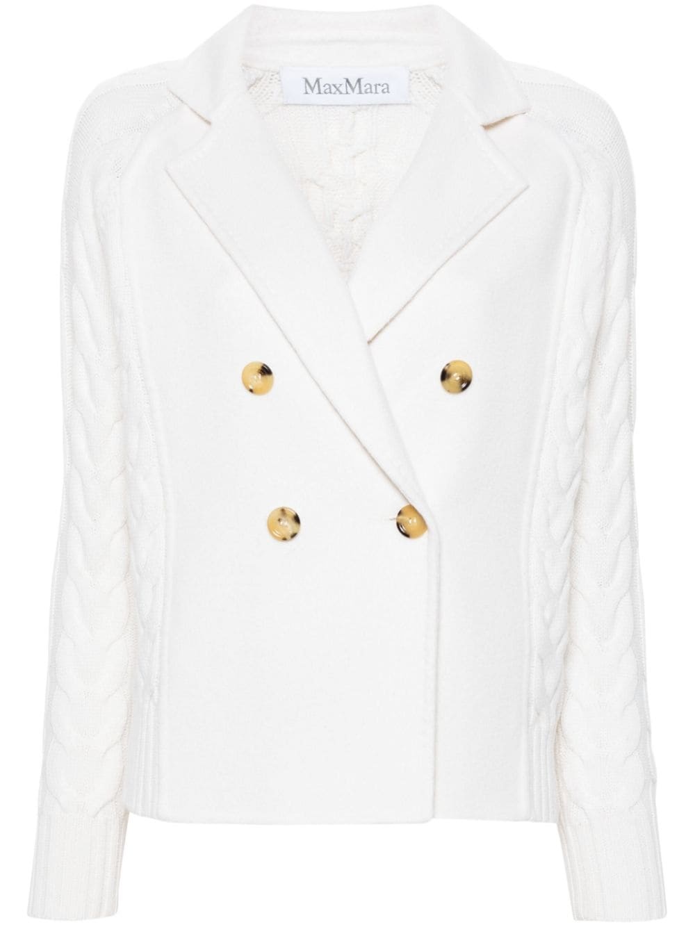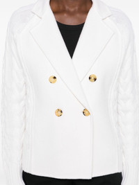 Micio double-breasted jacket Highlights - Cream white - Wool-cashmere blend - Felted - Notched collar - Long sleeves - Contrasting panel detail - Chunky cable knit - Straight hem - Double-breasted button fastening Imported Composition Wool 70%, Cashmere 30% SIZE & FIT Model measurements Height 5 ft 10 in(1.77 m) Bust/Chest 32.28 in(82 cm) Hips 35.03 in(89 cm) Waist 25.19 in(64 cm) FittingInformation Designed for a relaxed fit, this piece allows for comfort and movement when worn Made with a midweight knit, this piece offers some stretch This piece fits true to size – take your usual size