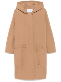 Miele coat Highlights - Camel brown - Concealed front zip fastening - Two front patch pockets - Elasticated drawstring waistband - Side slits Made in Italy Composition Virgin Wool 85%, Cashmere 10%, Polyamide 5% SIZE & FIT Model measurements Height 5 ft 11 in(1.8 m) Bust/Chest 31.49 in(80 cm) Hips 35.82 in(91 cm) Waist 24.8 in(63 cm) FittingInformation Designed to be unstructured, offering a loose fit throughout The adjustable drawstring means that you can adjust this piece’s fit to suit your comfort and preference Made from a midweight non-stretch fabric
