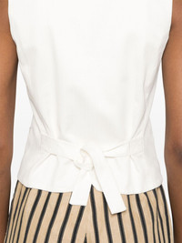 Mirella waistcoat Highlights - White - Front button fastening - Two front welt pockets - Adjustable strap to the rear - Full lining Imported Composition Lining: Viscose 59%, Cotton 38%, Spandex/Elastane 3% Outer: Cotton 100% SIZE & FIT Model measurements Height 5 ft 11 in(1.8 m) Bust/Chest 31.49 in(80 cm) Hips 36.61 in(93 cm) Waist 24.4 in(62 cm) FittingInformation Designed for a slim fit that sits just away from the body offering a close yet comfortable fit The tie fastening gives an adaptable and personalised fit Made from a midweight fabric