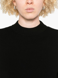 mock-neck T-shirt Highlights - Black - Drop shoulder - Short sleeves - Straight hem Imported Composition Viscose 72%, Polyester 28% SIZE & FIT Model measurements Height 5 ft 9 in(1.75 m) Bust/Chest 34.64 in(88 cm) Hips 36.61 in(93 cm) Waist 26.37 in(67 cm) FittingInformation Designed to be unstructured, offering a loose fit throughout Made from a midweight non-stretch fabric, this piece offers minimal elasticity when worn