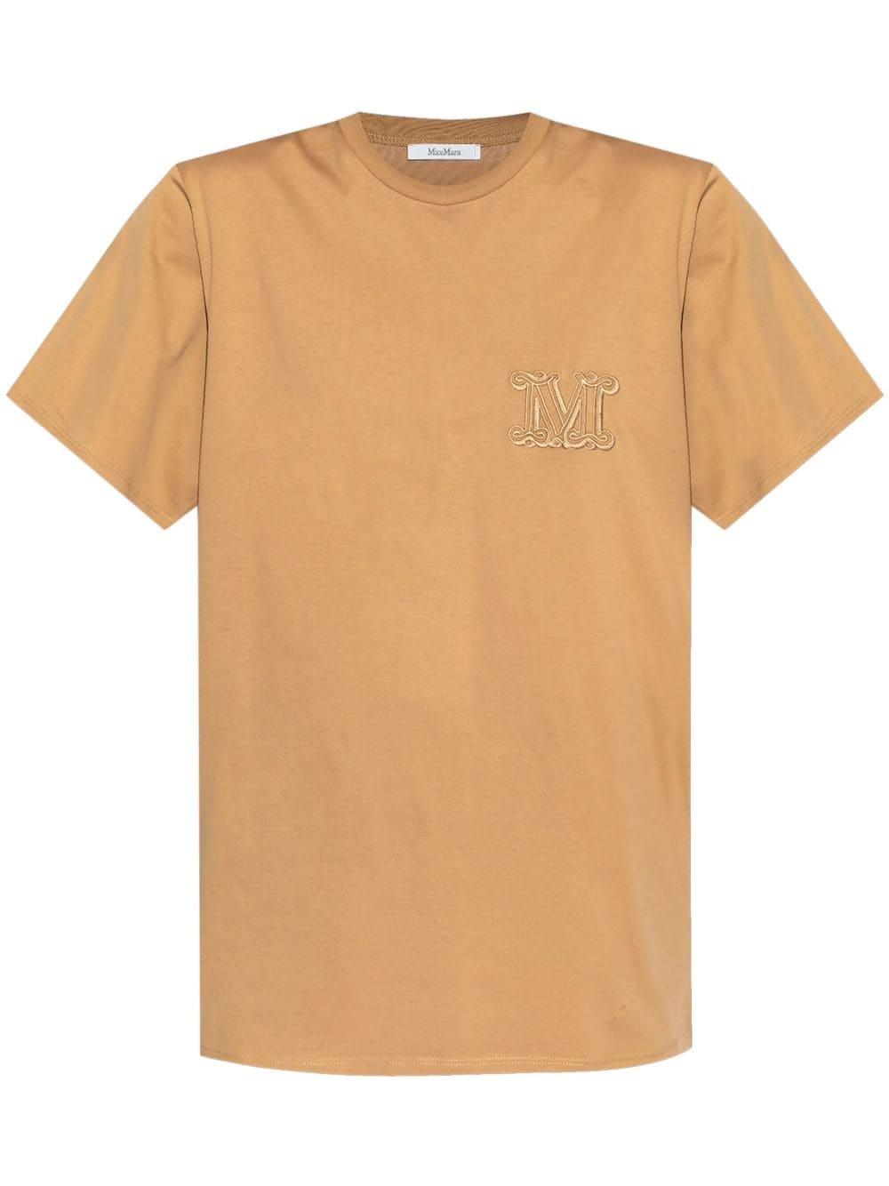monogram-embroidered cotton T-shirt Highlights - Camel brown - Cotton - Embroidered logo to the front - Crew neck - Short sleeves - Straight hem Made in Italy Composition Cotton 100% SIZE & FIT FittingInformation Designed to be unstructured, offering a loose fit throughout Made from a midweight non-stretch fabric, this piece offers minimal elasticity when worn