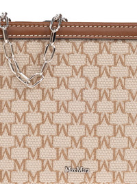 monogram-pattern clutch bag Highlights - Camel brown - Top zip fastening - Chain-link shoulder strap - Main compartment Made in Italy Composition Outer: Cotton 100%, Calf Leather 100% SIZE & FIT Measurement HEIGHT 4.52 in(11.5 cm) WIDTH 5.9 in(15 cm)