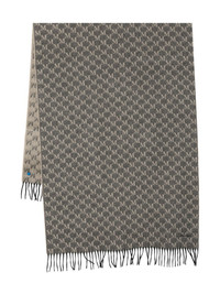 monogram-pattern fringed scarf
