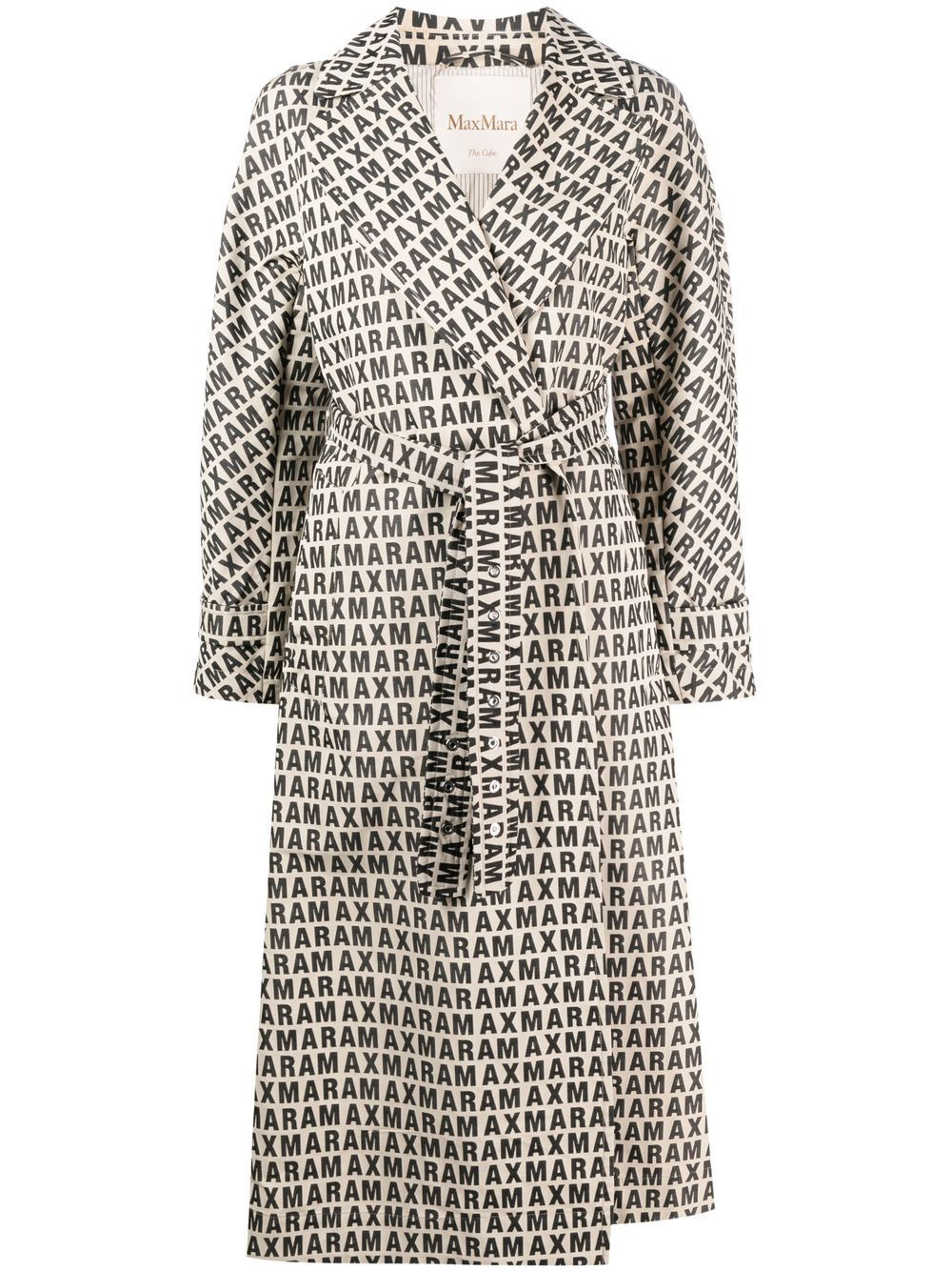 monogram print coat light beige/black cotton blend monogram pattern flared design notched lapels long sleeves touch-strap cuffs belted waist mid-calf length Imported Composition Outer: Cotton 51%, Polyester 25%, Polyamide 24% Lining: Polyester 100% SIZE & FIT Model measurements Height 5 ft 11 in(1.8 m) Bust/Chest 31.49 in(80 cm) Hips 36.22 in(92 cm) Waist 25.59 in(65 cm) FittingInformation This piece fits true to size. We recommend you get your regular size Cut for a loose fit. Comes with an adjustable belt for a flexible fit at the waist Made with a mid-weight non-stretch fabric Washing instructions Dry Clean Only