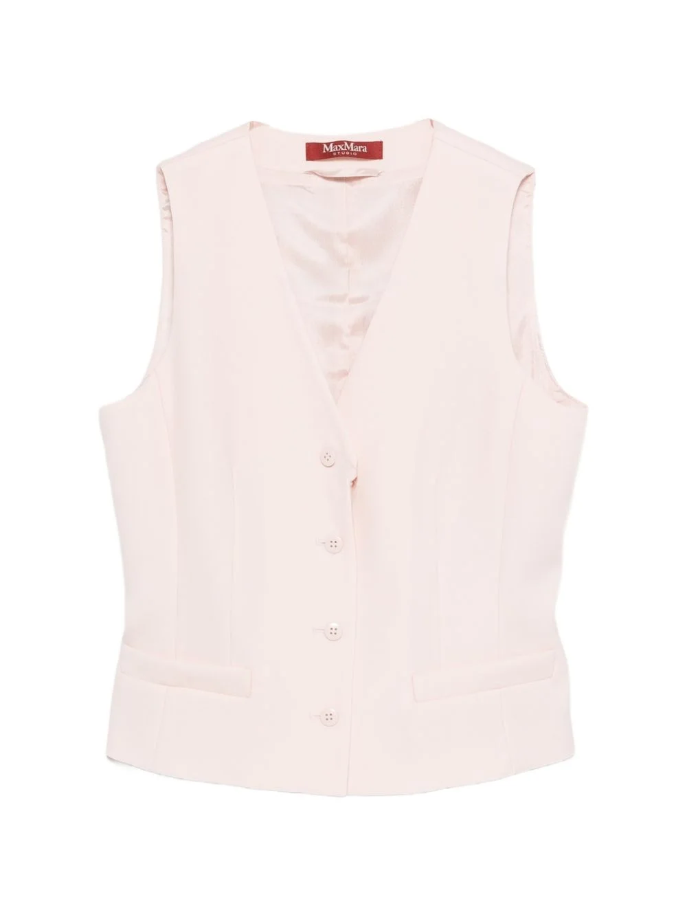 Mstmadia button V-neck jacket Highlights - Pink - V-neck - Button fastening - Flap pockets - Sleeveless - 100% wool Made in Italy Composition Outer: Virgin Wool 100% Lining: Acetate 70%, Polyester 30% Washing instructions Dry Clean Only